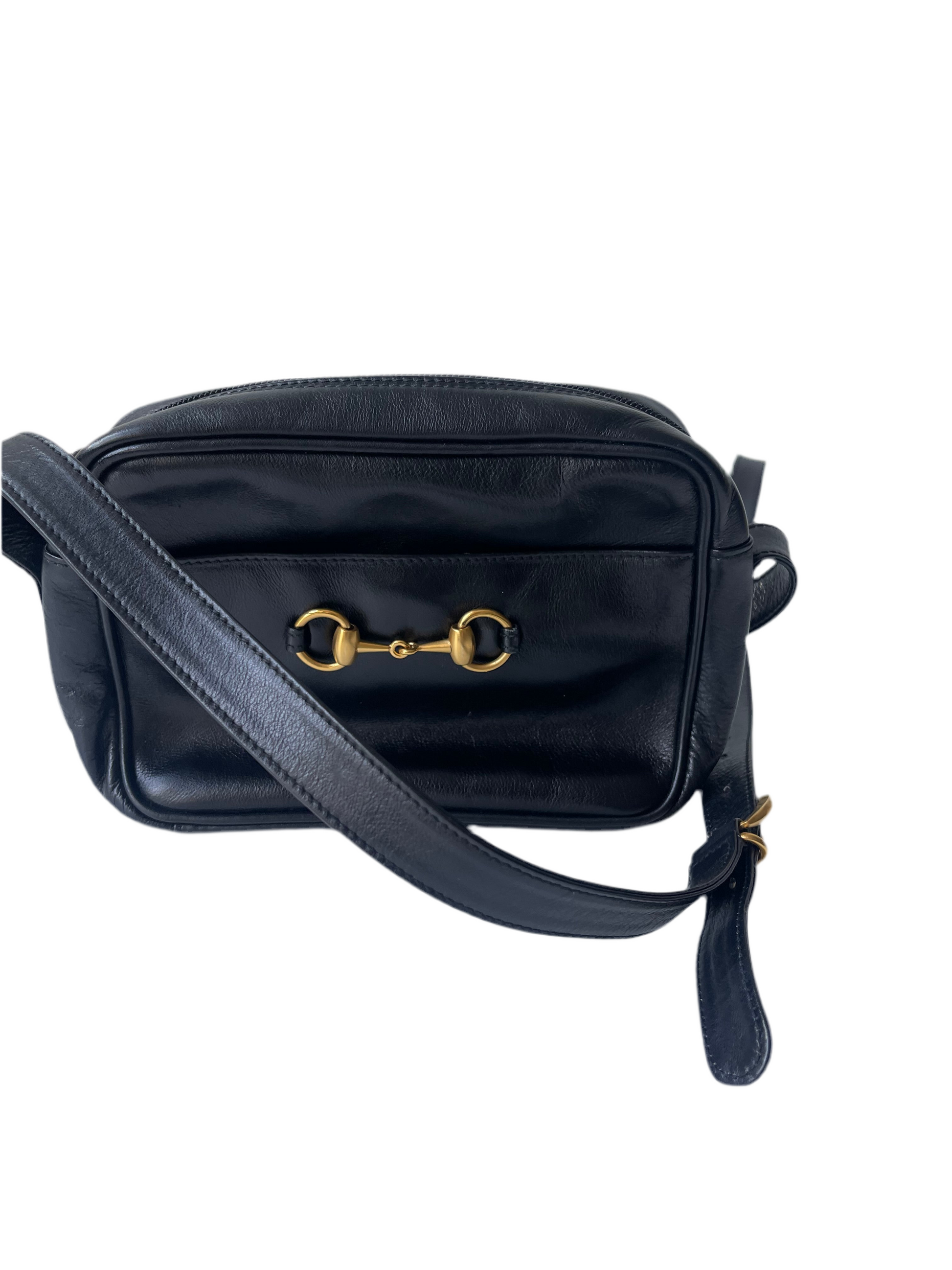 Item: Gucci Vintage Horsebit Schoudertas – Zwart Leer – ca. jaren ’80