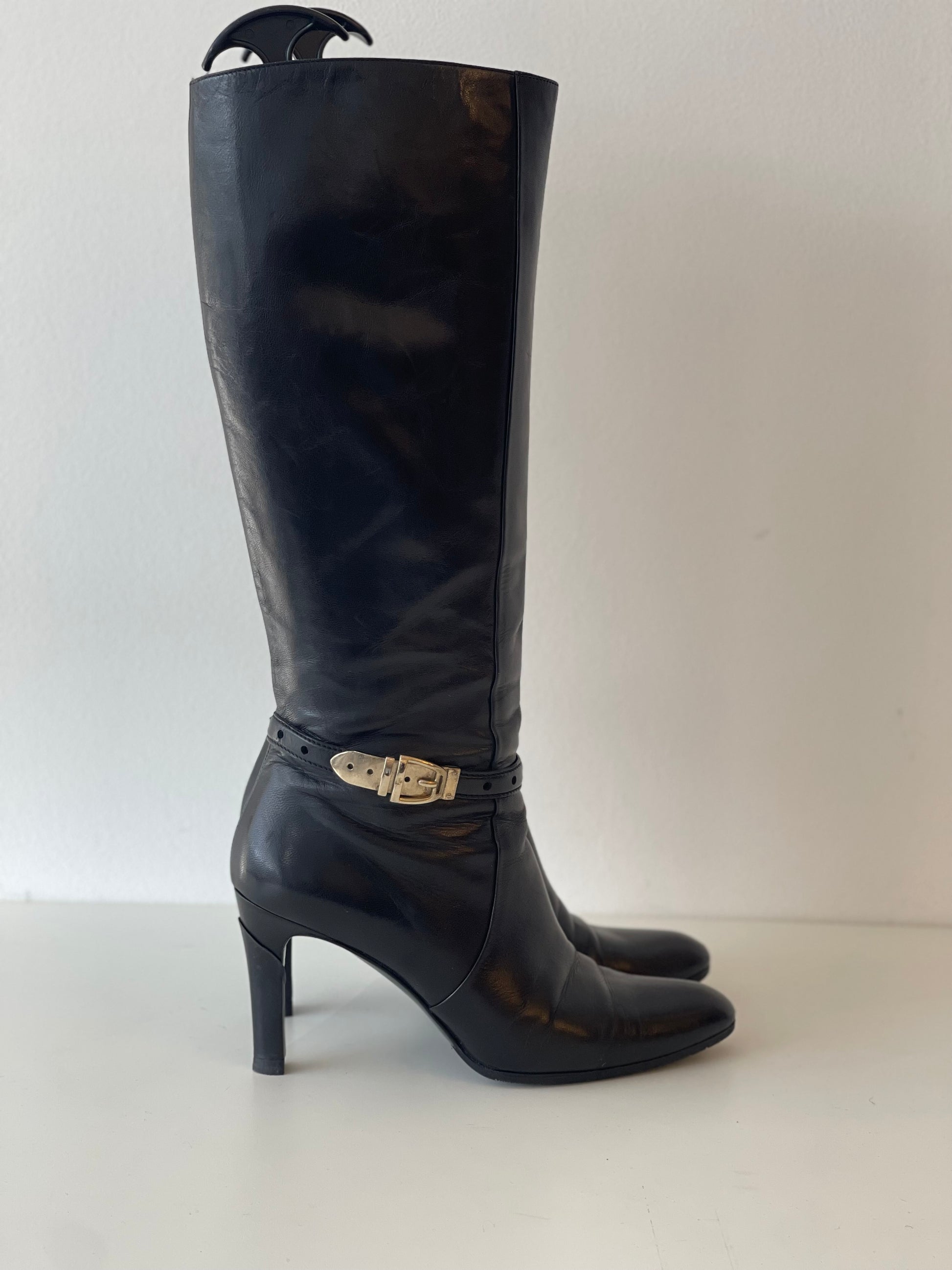 GUCCI BOOTS RIDING BOOTS SHOES BLACK LEATHER SIZE EU 38 38.5 / UK 5.5