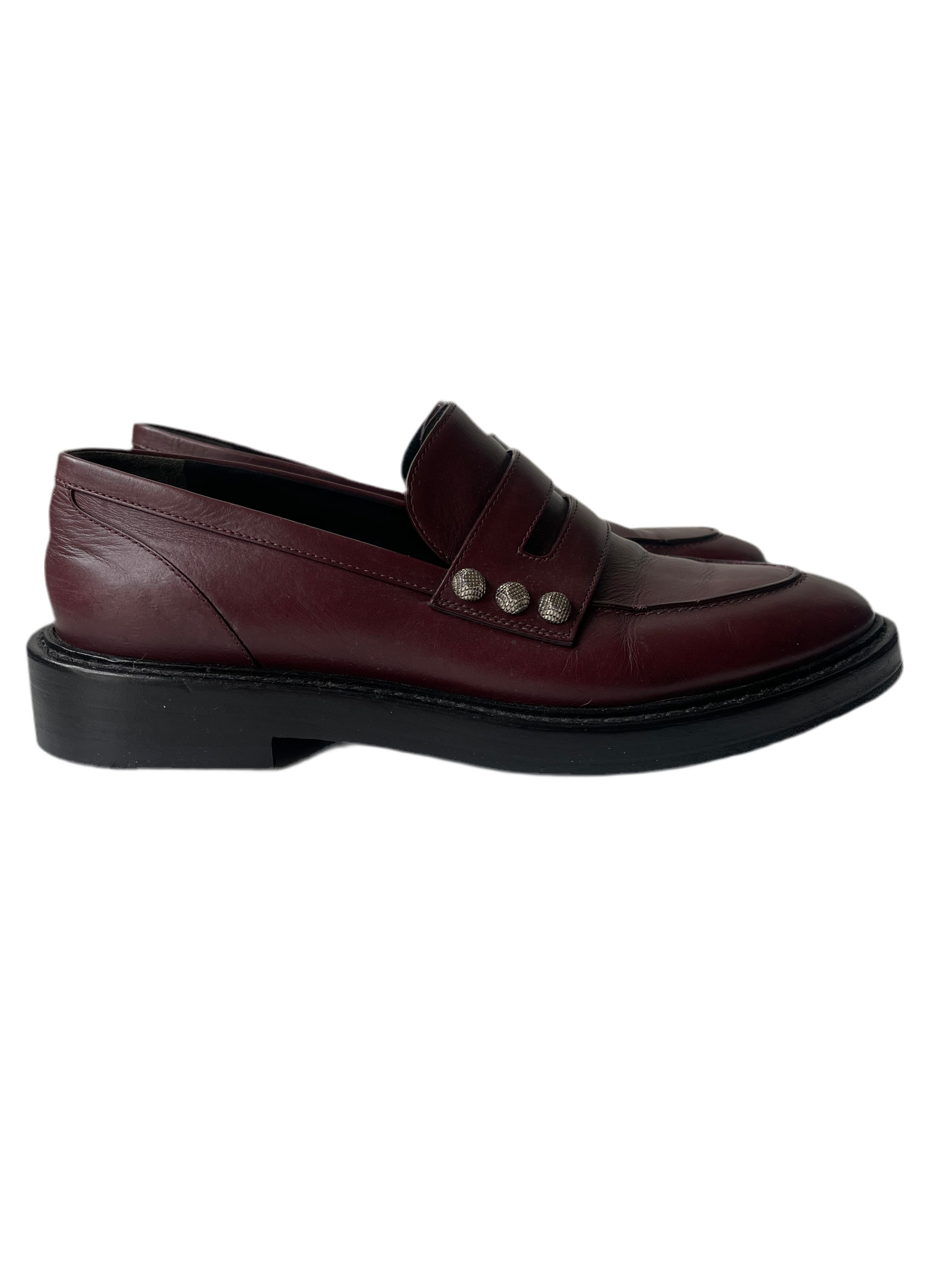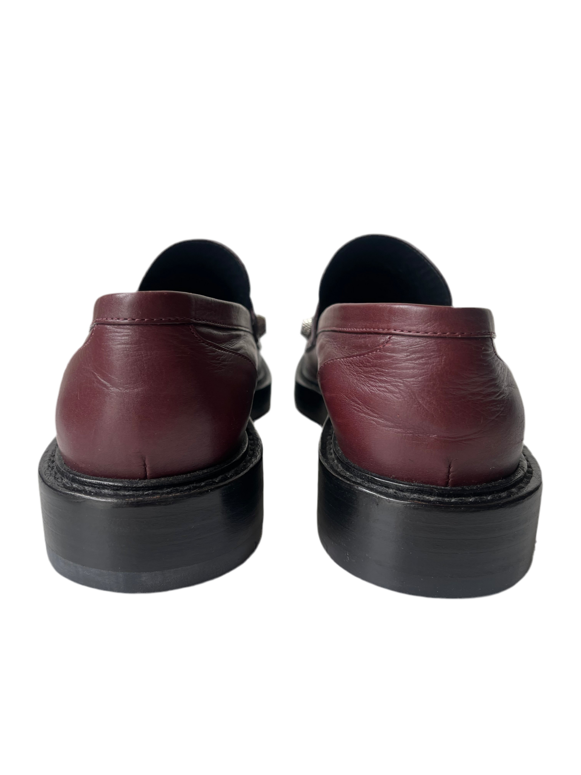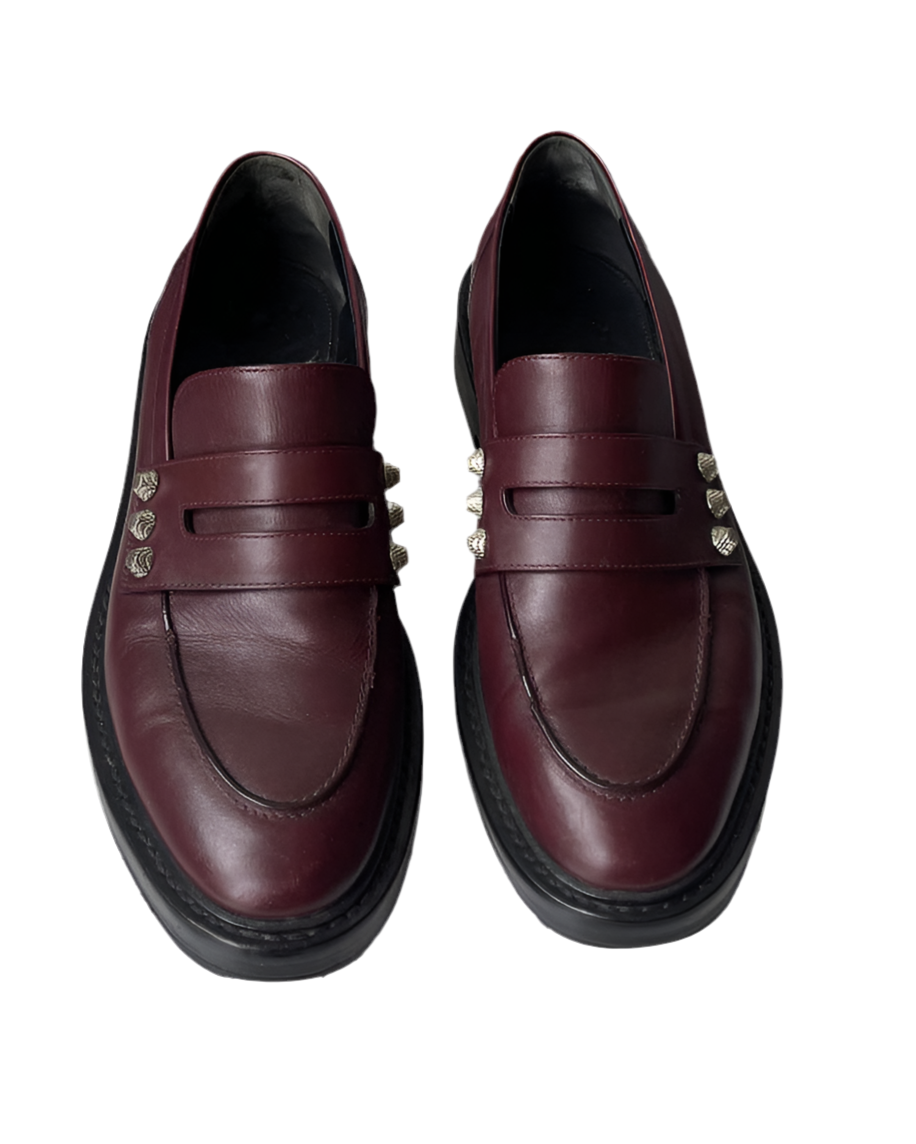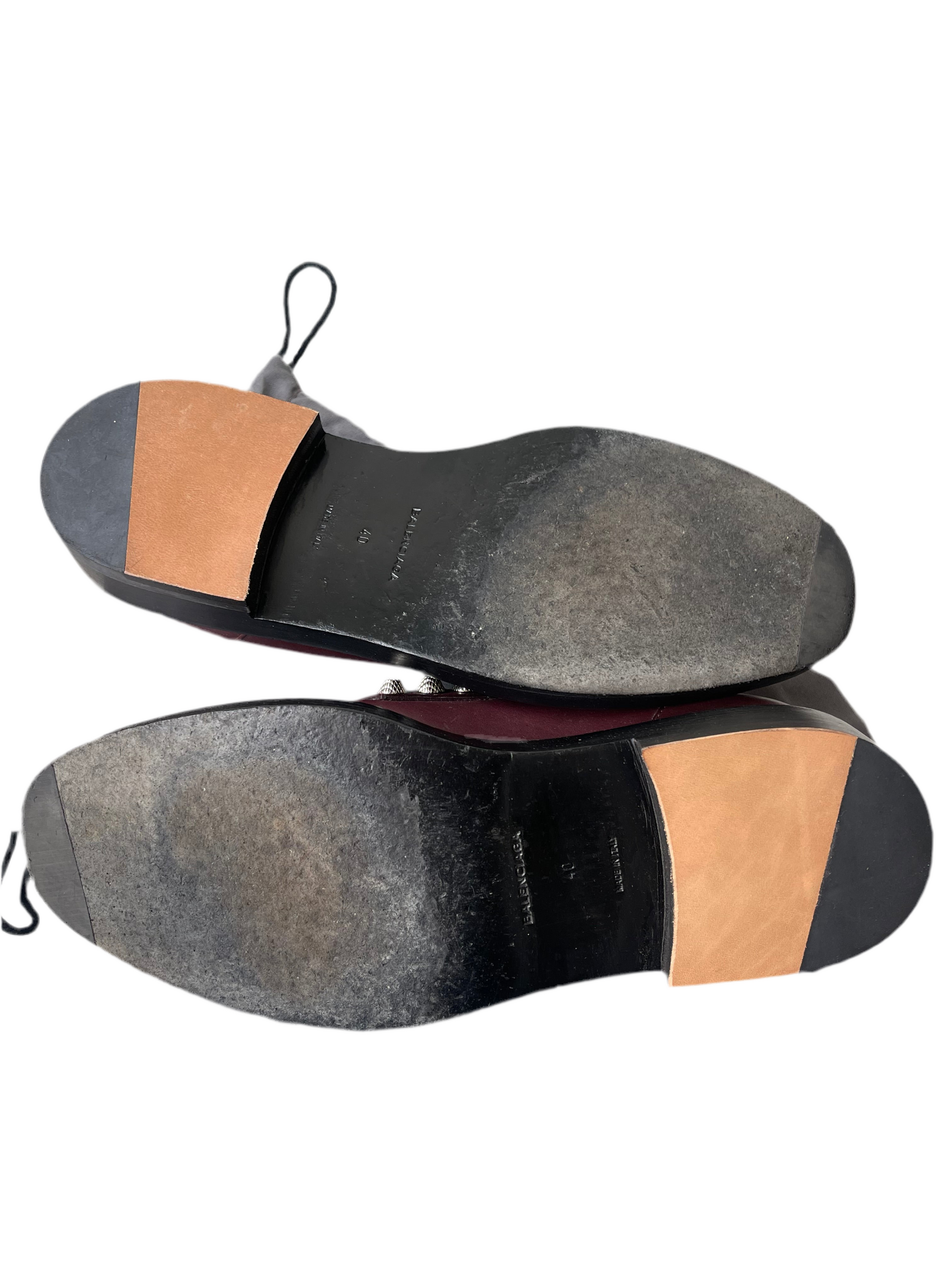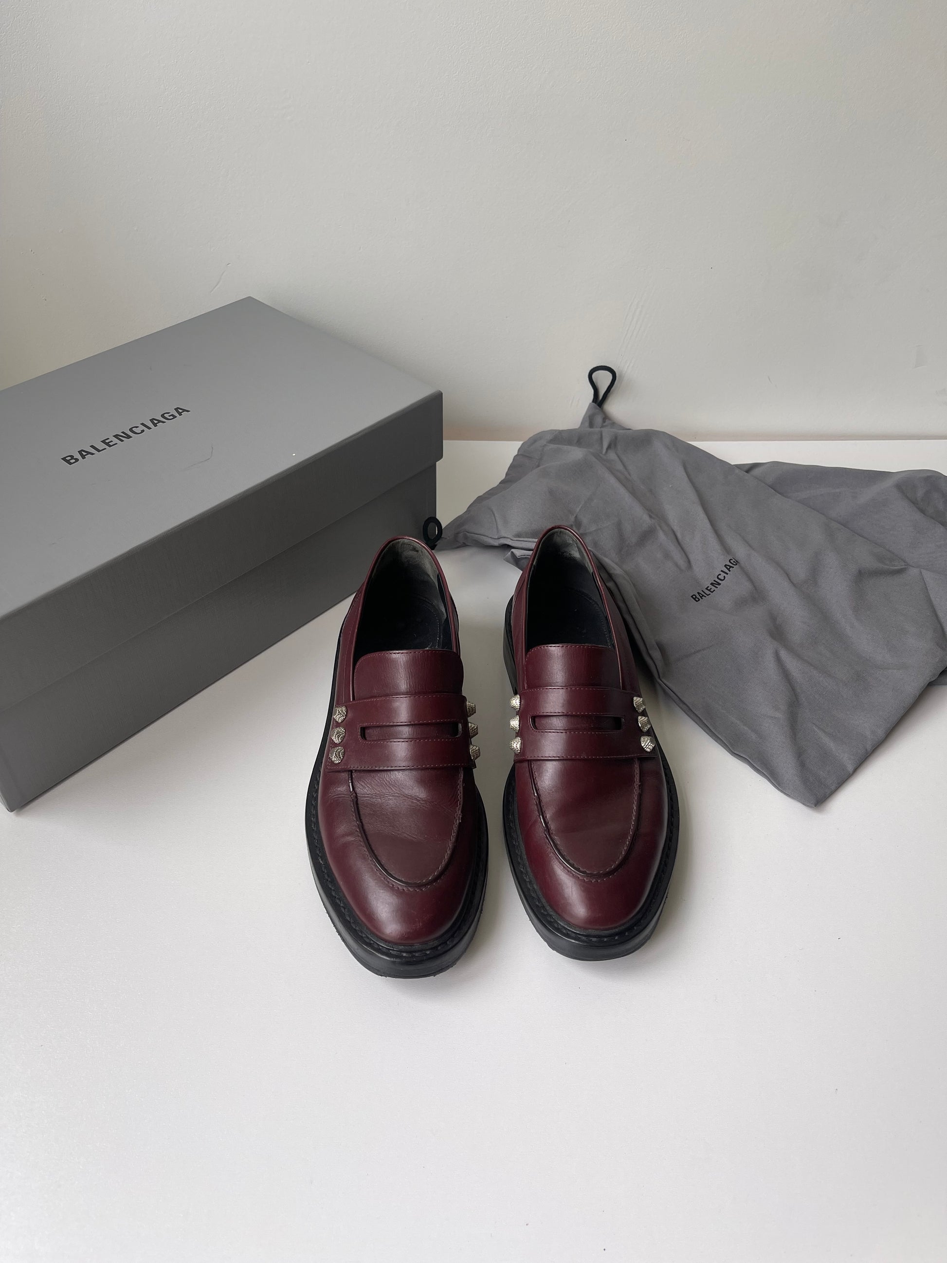Elegante en tijdloze zwarte Balenciaga loafers in maat EU 40 met een verkoopprijs van circa 1050 EUR. Gemaakt van hoogwaardig reliëf kalfsleer met een subtiele glans voor een verfijnde look. Deze loafers combineren moeiteloos comfort en luxe en zijn perfect voor zowel casual als formele gelegenheden. De schoenen zijn in zeer goede staat, licht gedragen en vertonen zeer minimale gebruikssporen, met zorg behandeld en altijd netjes opgeborgen in de doos en stofzak. Een stijlvolle aanvulling op elke garderobe, van het iconische modehuis Balenciaga.