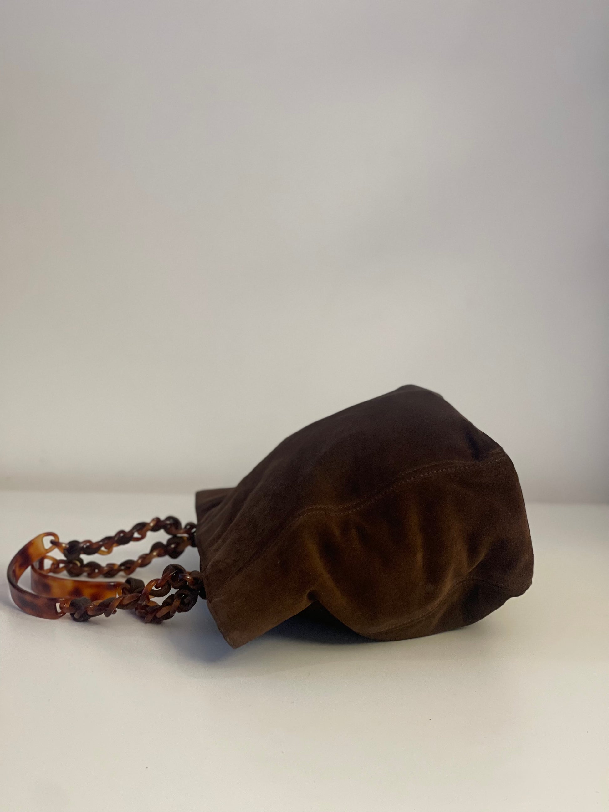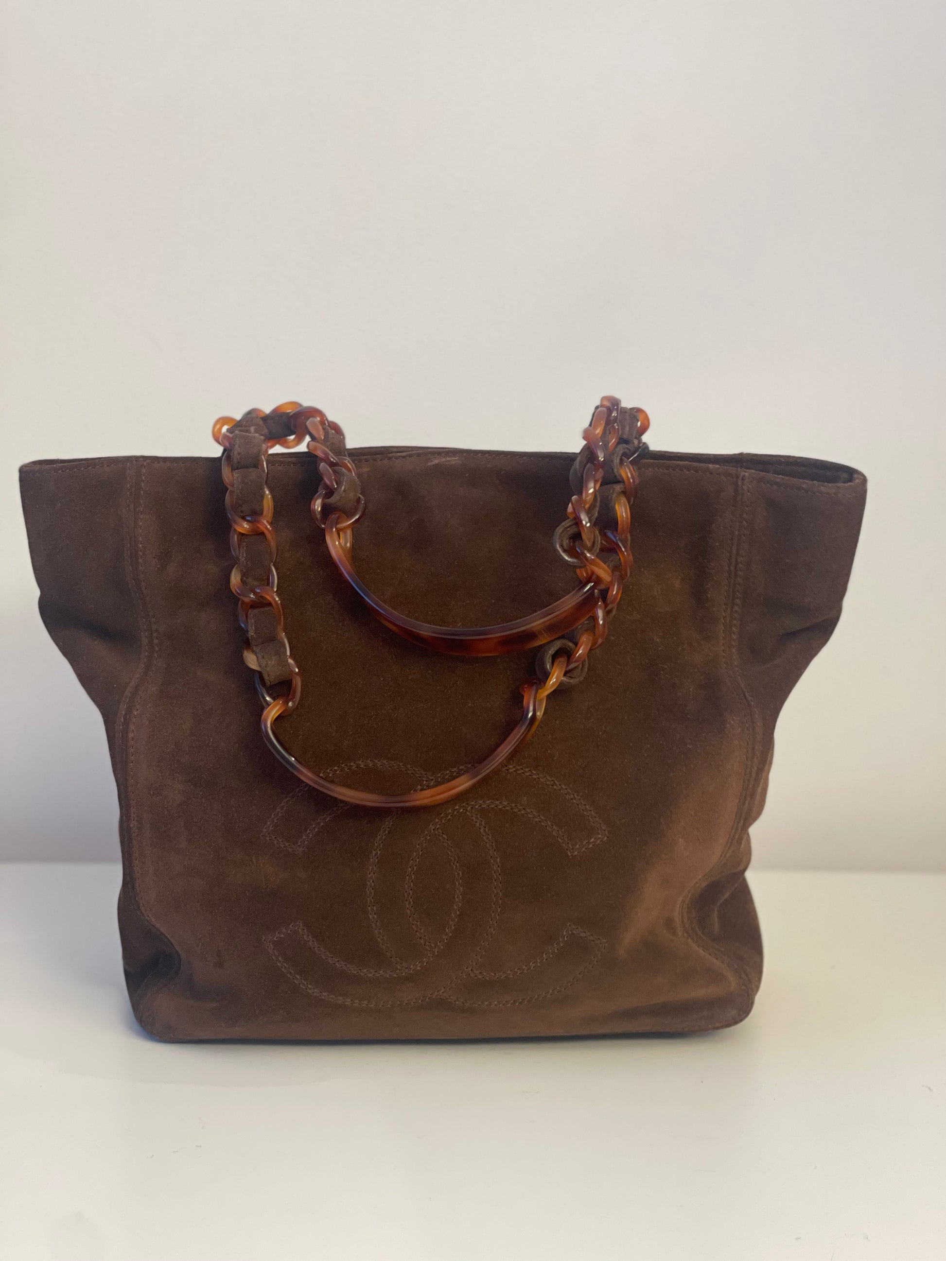 CHANEL TAS HANDTAS DONKERBRUIN BRUIN SUÈDE LEER