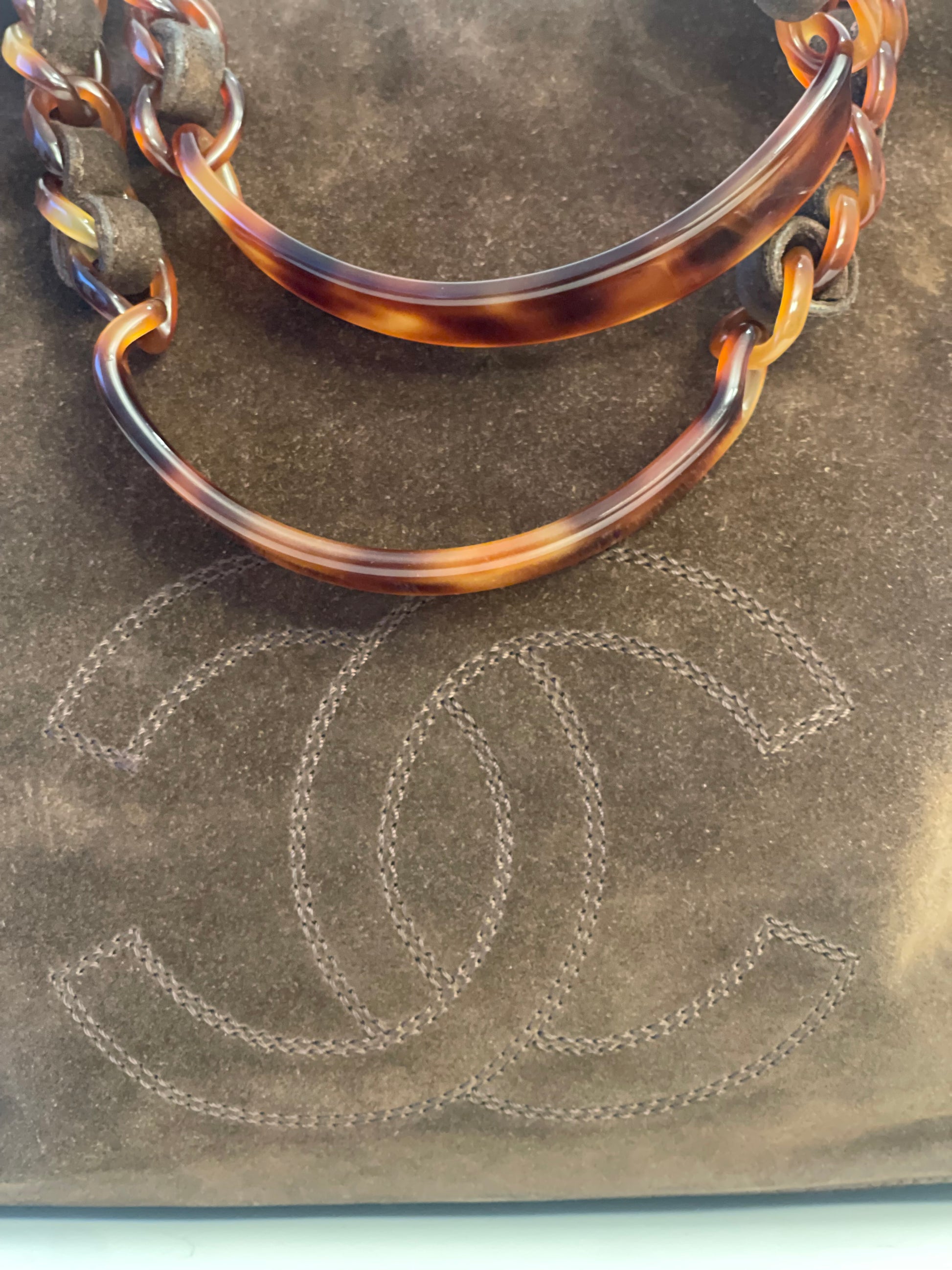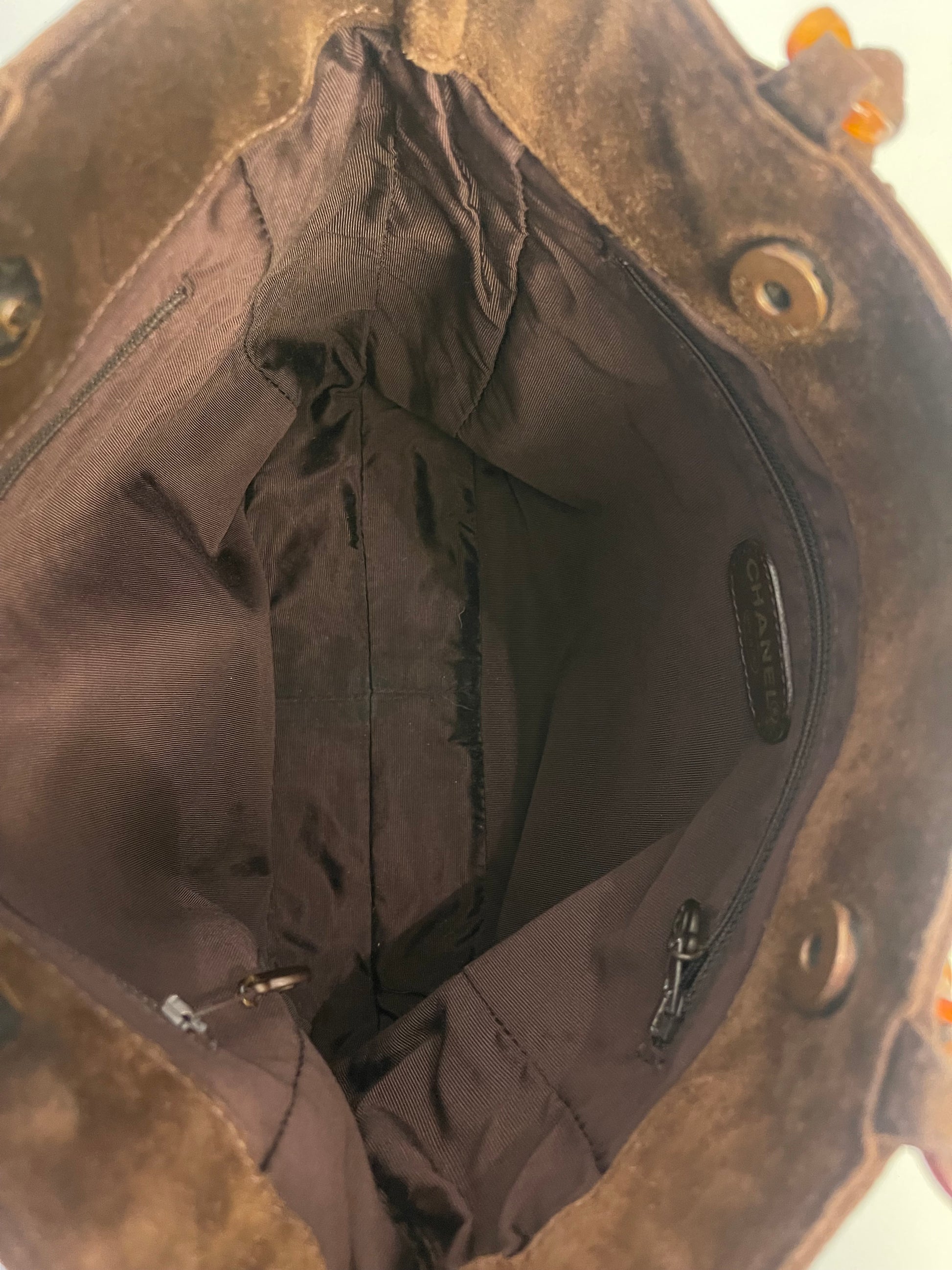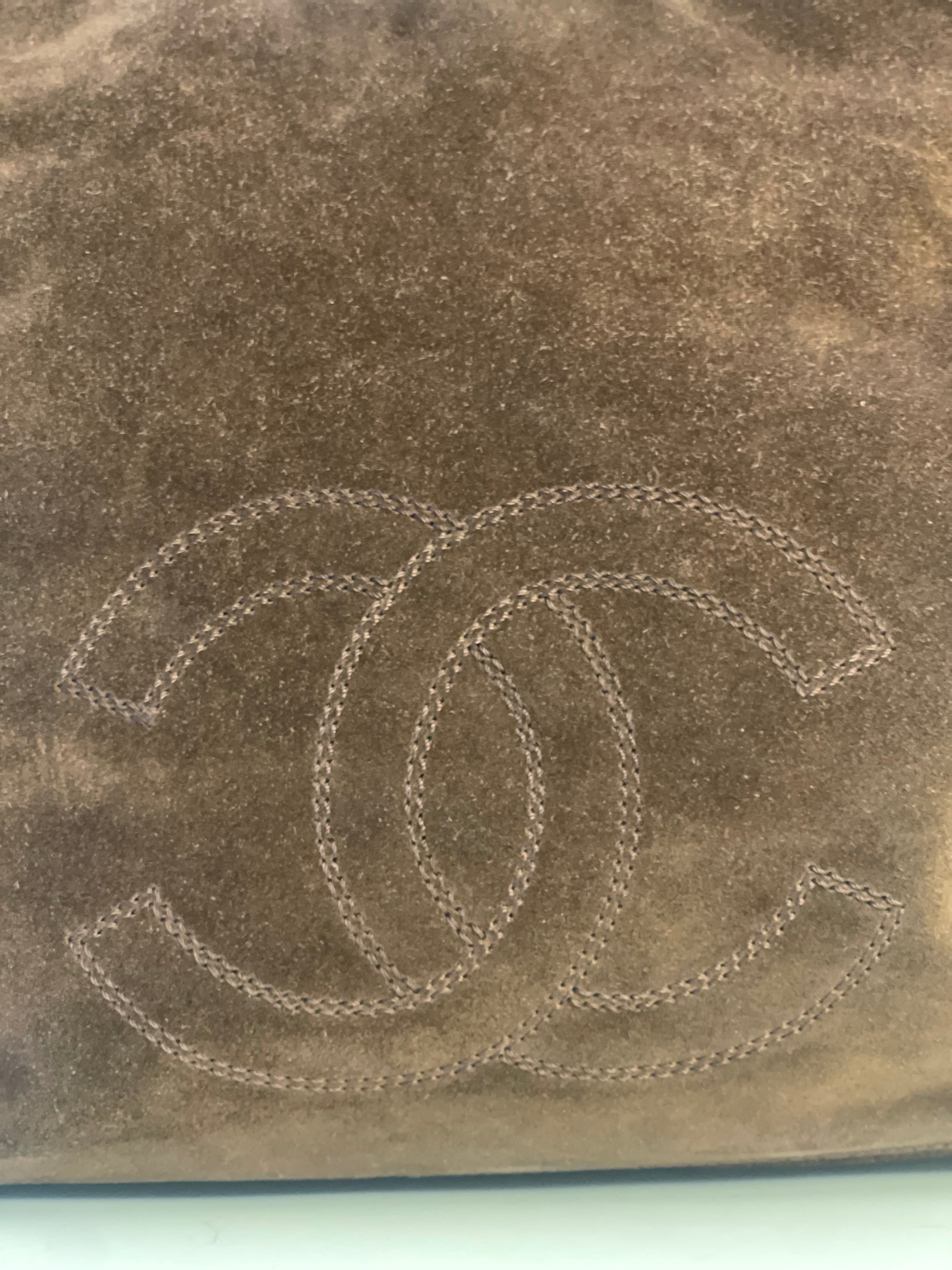 Chanel Suède Donkerbruine Handtas in Zeer Goede Staat