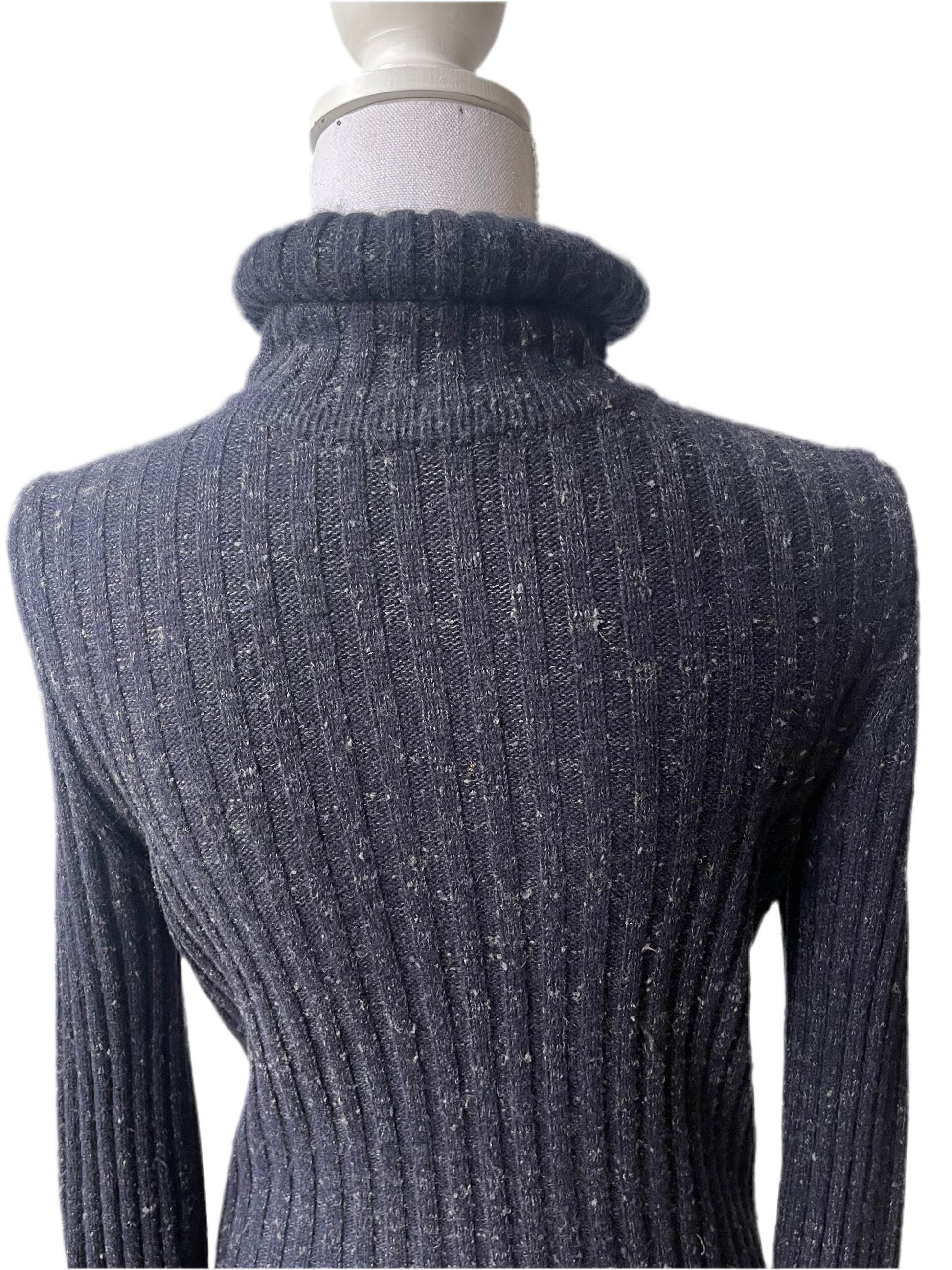 Prachtige en zeldzame Chanel jurk in luxueus wol met cashmere. Chanel Donkerblauwe Trui / jurk – Wol/Zijde/Cashmere – Maat 38 – Ref / AY378