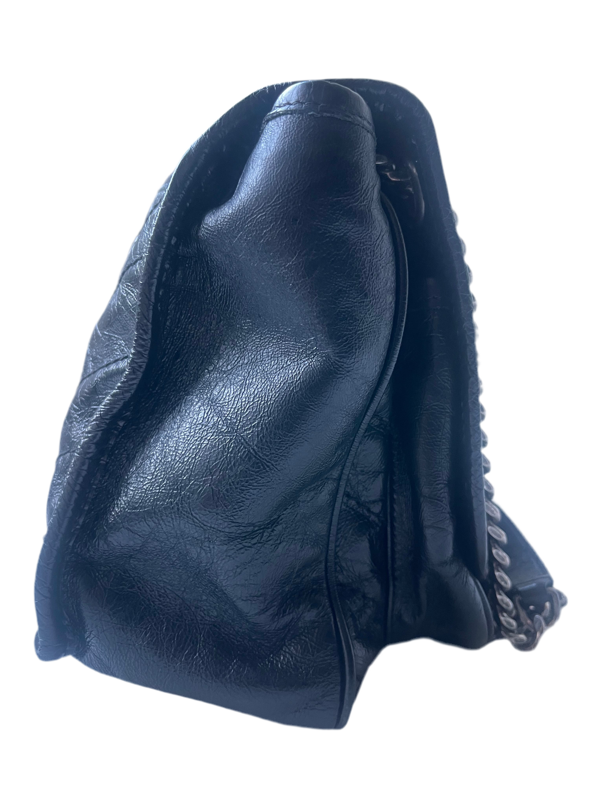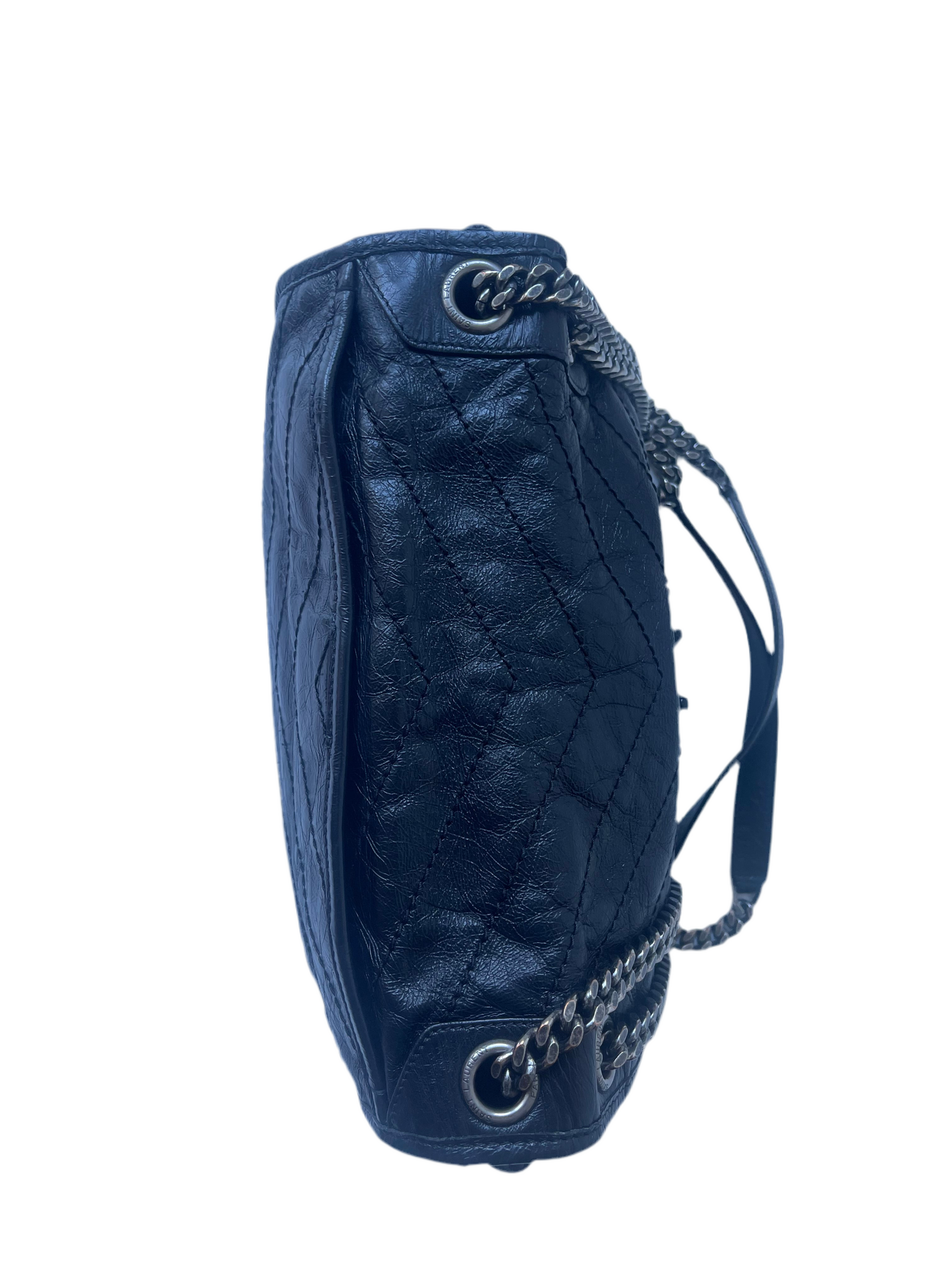 De Saint Laurent Niki Medium in zwart crinkled calfskin (circa 28 cm breed) is een stijlvolle look en moderne functionaliteit. Praktisch ingedeeld, veelzijdig draagbaar (als schouderband ketting dubbel of crossbody ketting enkel en lang) en met een uitstraling die zowel edgy als elegant is.