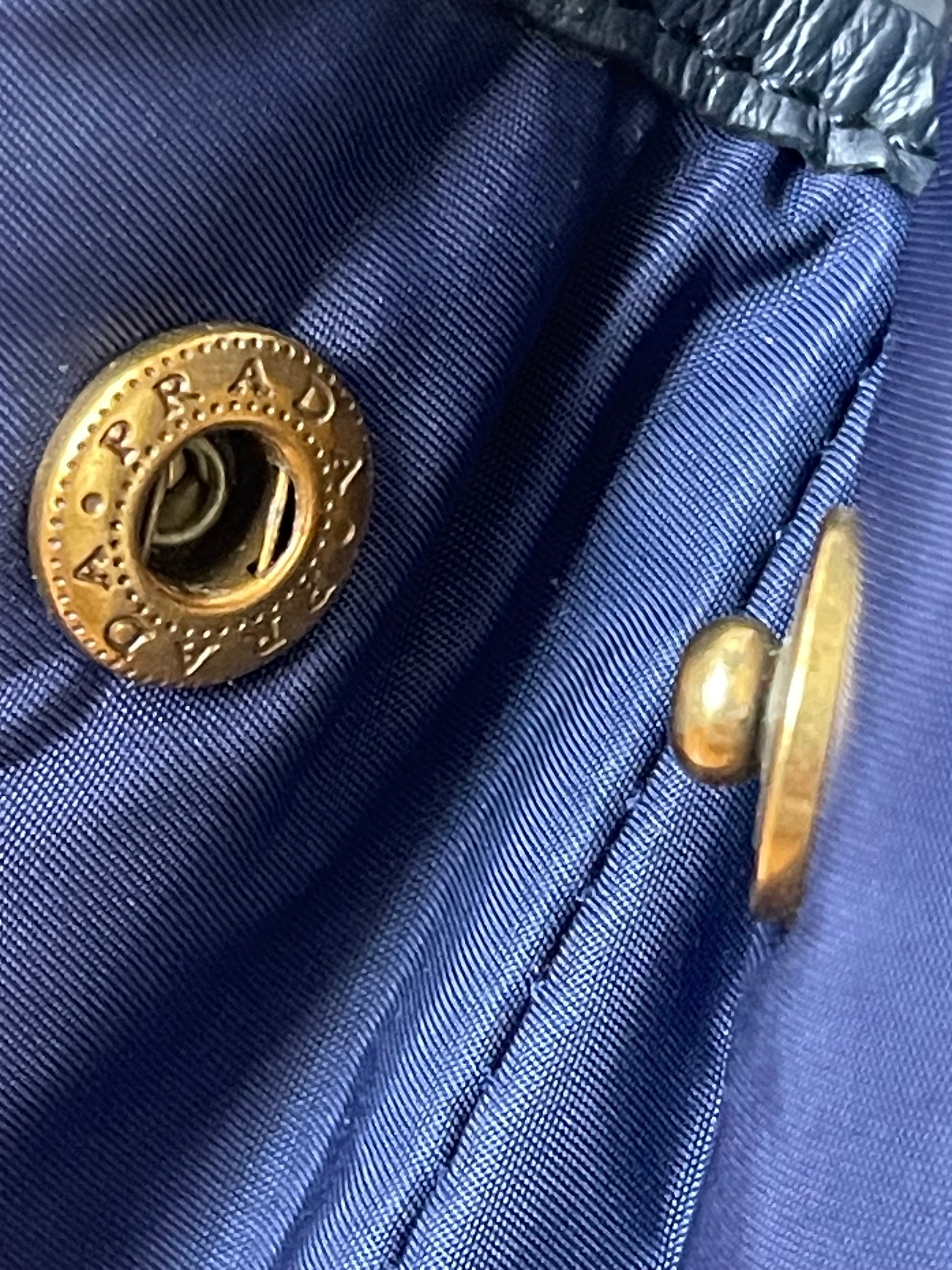 Prada 2way Schoudertas Geplooid Gouden Logo Marineblauw Nylon