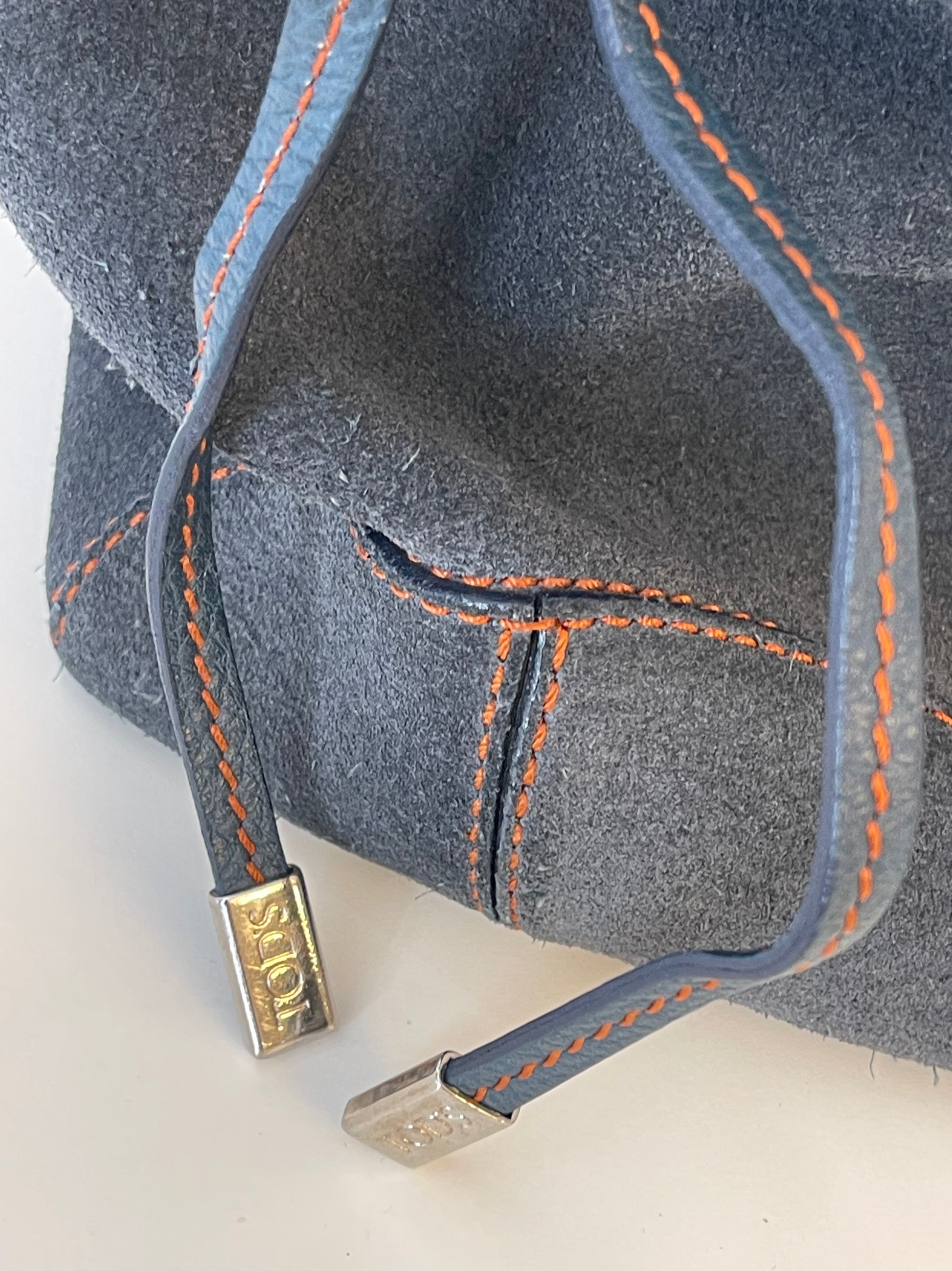 TODS PONY TAS SHOPPERTAS SCHOUDERTAS DONDERBLAUW SUEDE LEER